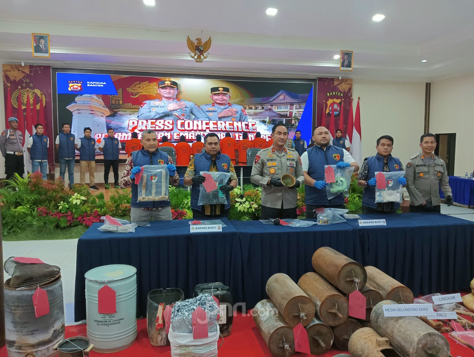 Lebih lanjut, Yudhis menjelaskan peran masing-masing tersangka dalam aktivitas ilegal ini. UK dan AG berperan sebagai pemilik dan pengolah emas, sementara tersangka YA, YI, SU, AS, dan DE adalah pemilik lokasi pengolahan emas. Sedangkan AN, OK, dan SM bertindak sebagai penyewa lokasi tambang. Polda Banten telah menerapkan Pasal 161 Undang-Undang tentang Pertambangan Mineral dan Batubara terhadap para tersangka, dengan ancaman hukuman penjara hingga lima tahun dan denda maksimal Rp 100 miliar.